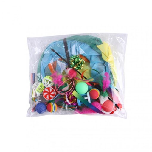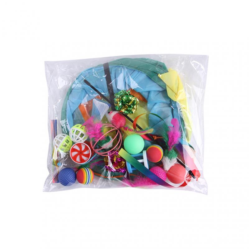21Pcs Cat Toys Kit Collapsible Tunnel Cat Toy Fun Channel Feather Balls Mice Shape Pet Kitten Dog Cat Interactive Play Supplies
