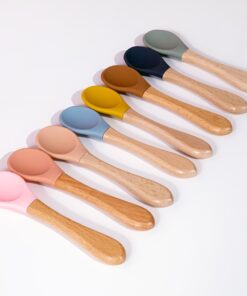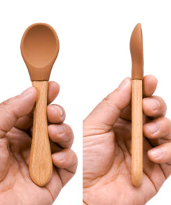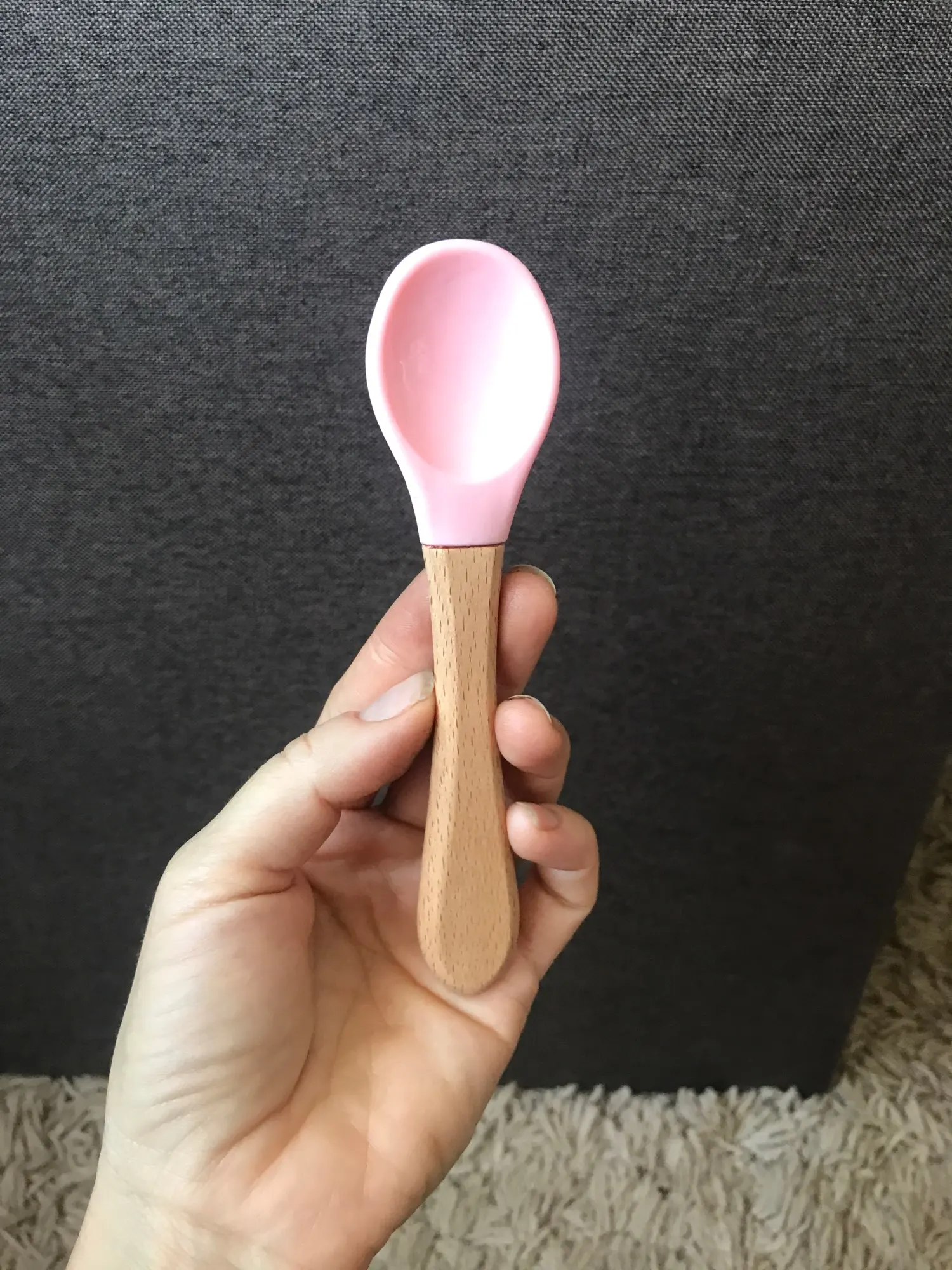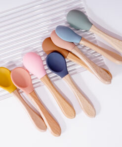 Feeding Wooden Handle Silicone Spoon For Baby Utensils Eat Soild Food Kids Training Manipulative Ability Children’s Tableware