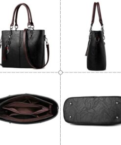 Bag price-quality matches. Artificial leather with a pattern. Quality fittings. Small, but roomy. Inside there is a pocket with a zipper, a pocket for the phone and a middle compartment with a zipper. Outside, too, a pocket with a zipper under the keys. I’m happy with the purchase.