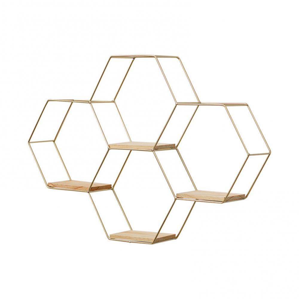 Nordic Hexagonal Iron Stand Small Pot Wall Holder Home Shelf Storage Holder Metal Decorative Photo Wall Rack Decorative Shelves