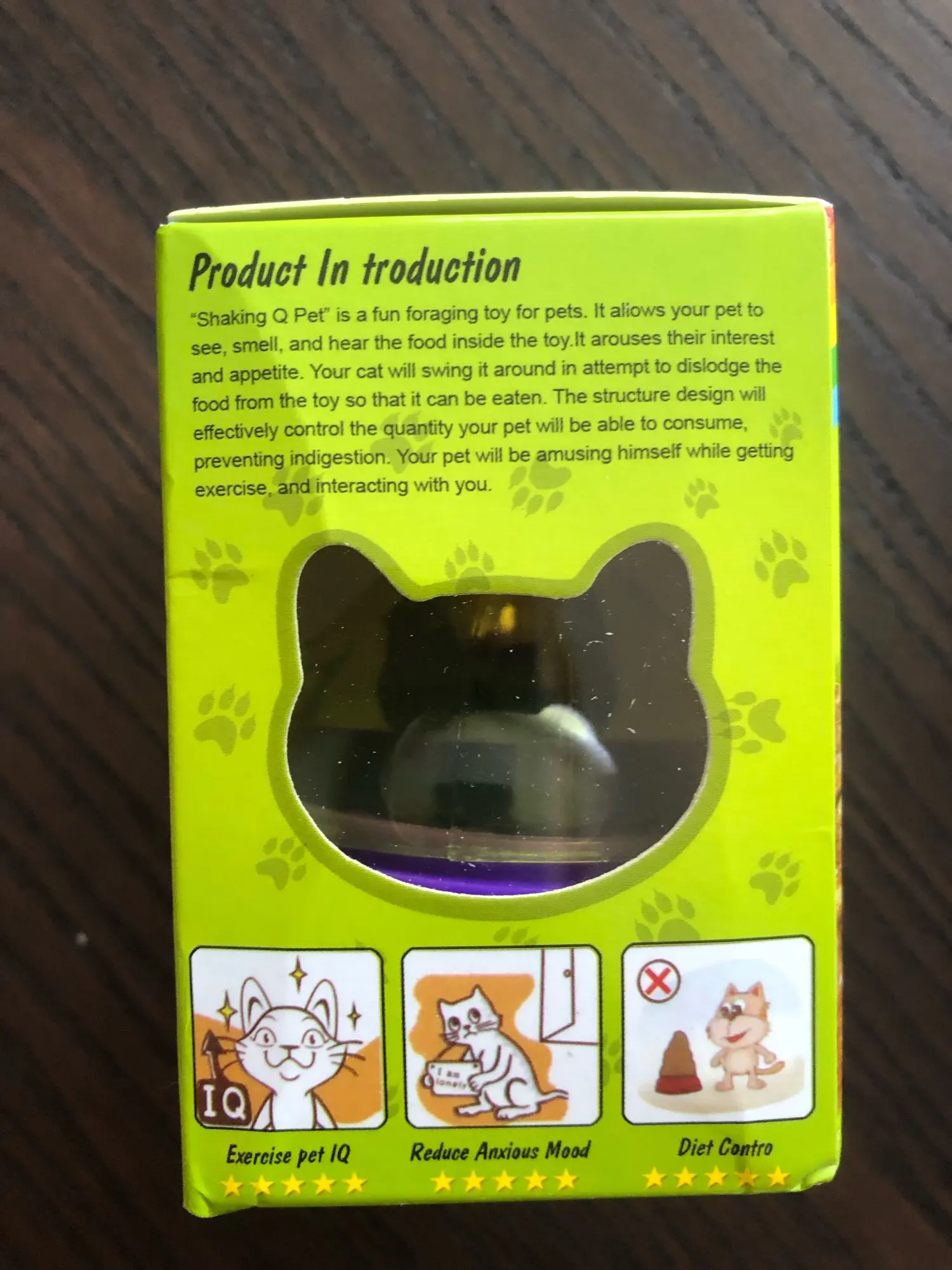 Заказ пришел быстро, быстрее, чем ожидалось. Коты пока не заинтересовались, но, надеюсь, поймут, что к чему. Учу их, что внутри корм, который может высыпаться. Один из моих котов страдает лишним весом и идея была в том, чтоб он добывал еду из этой игрушки и таким образом тратил калории. Надеюсь, научится.