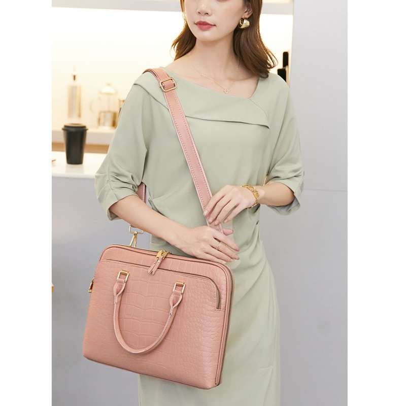 Volasss Women’s Fashion Leather Shoulder Bags New Women Briefcase For 13.3″ 14.1 Inch Laptop Handbag Woman Work Office Handbags